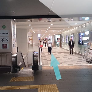 しばらく進むとエスカレーターがありますので降ります。