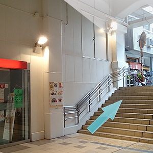 目の前のUFJ銀行がありますので、その右側の階段を上って駅から出ます。